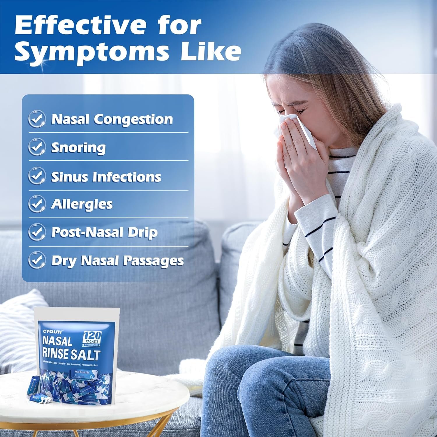 CYOUH Saline Packets provide a fast and natural way to clear your nose and stop sinus pain. These packets help you breathe better by removing dust and pollen. Because we use a balanced formula, the rinse feels gentle and does not sting. You can maintain your nasal health every day with this professional-grade kit.