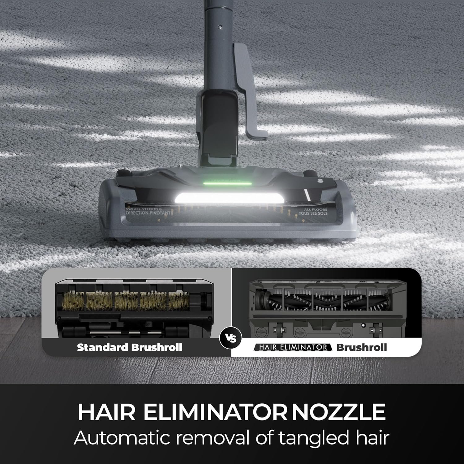 Hair Eliminator Brushroll: Automatically removes hair from the brushroll as you clean, so you never have to cut it off with scissors.